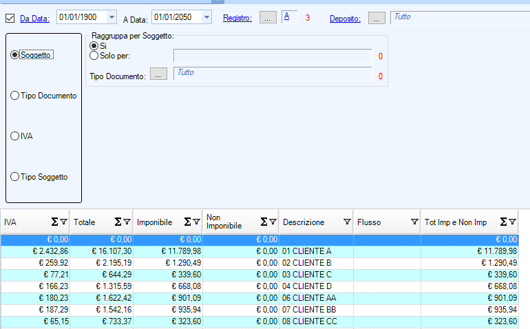 Vuoi fare attività di marketing (email o newsletter) sui clienti?. Facilmente potrai conoscere i clienti con maggior fatturato nell'anno, oppure solo quelli che hanno acquistato almeno una certa quantità di un prodotto!