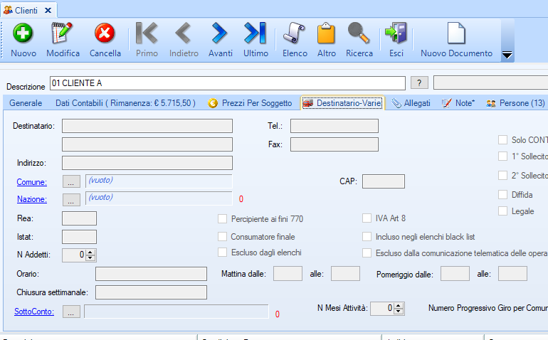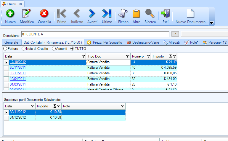 Un'unica postazione per avere sotto controllo tutto quello che riguarda un cliente. Fatture, Note di Credito, Fatture Pro Forma, Scadenze e Pagamenti. Anche inserire le informazioni è agevolato con il controllo in tempo reale della Partita iva, del codice fiscale e dell indirizzo email.