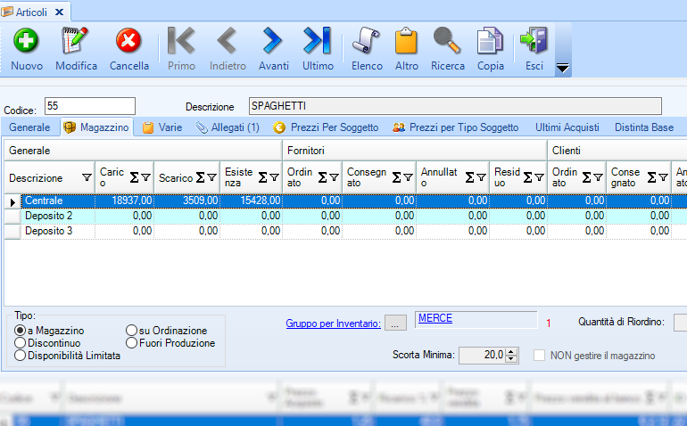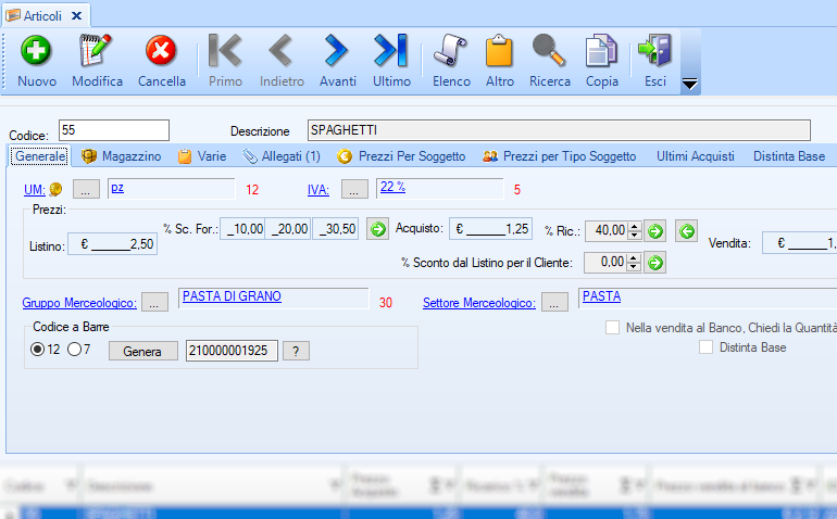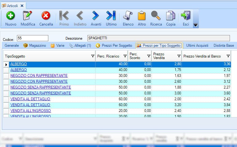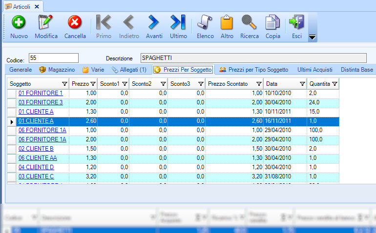 Potrai creare quanti articoli e listini vorrai (il prezzo potrà essere generato dal prezzo di acquisto o di vendita con ricalcolo al variare). Potrai importare i prezzi in formato CSV.