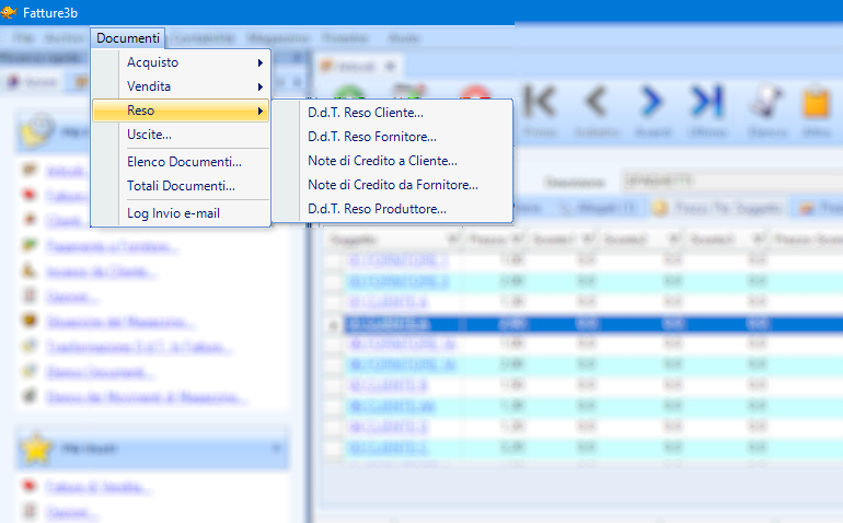 Potrai facilmente gestire i documenti di vendita e di acquisto: preventivi, ordini, DDT (documenti di trasporto), fatture, fatture pro-forma, resi, note di credito e di d'accredito, ricevute fiscali.