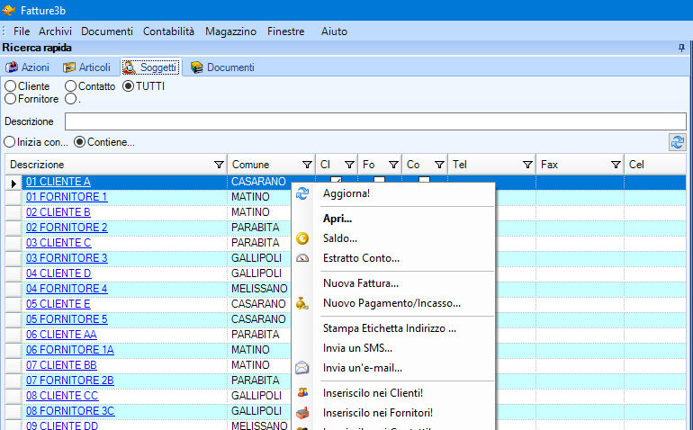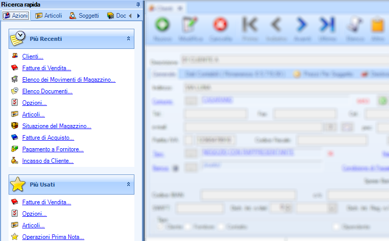 Senza aprire finestre e menù, potrai arrivare in un lampo alle informazioni più importanti di articoli, clienti e fornitori, documenti. Inoltre quello che hai appena fatto oppure quello che usi di più saranno sempre a disposizione.